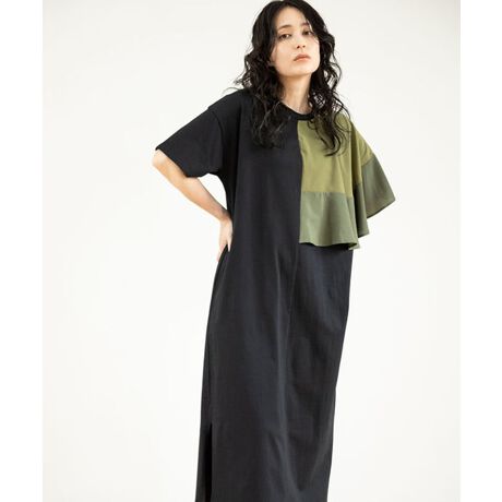 シフォン素材の軽やかなケープをアシンメトリーにレイヤードした、ウェアラブルなTシャツワンピース。