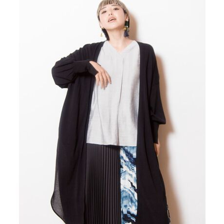 長めのリブ袖にスリットを入れ、女性らしさと着痩せ効果も同時に叶う。