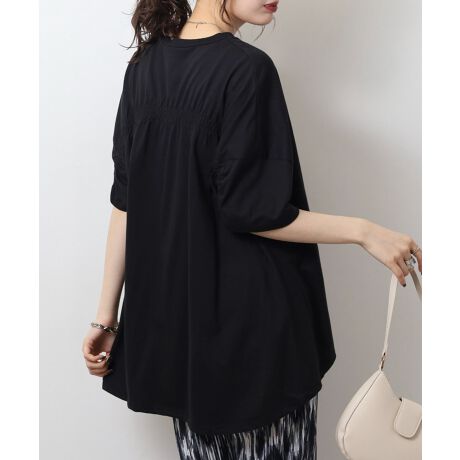 背中のギャザーデザインが後ろ姿までおしゃれに見せてくれます。