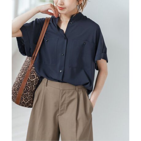 とろみのある薄手ジョーゼット素材を用いたシルキードレープシャツ。