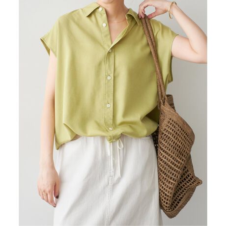 25050200318020 リネンブレンドフレンチヘムギャザーシャツ