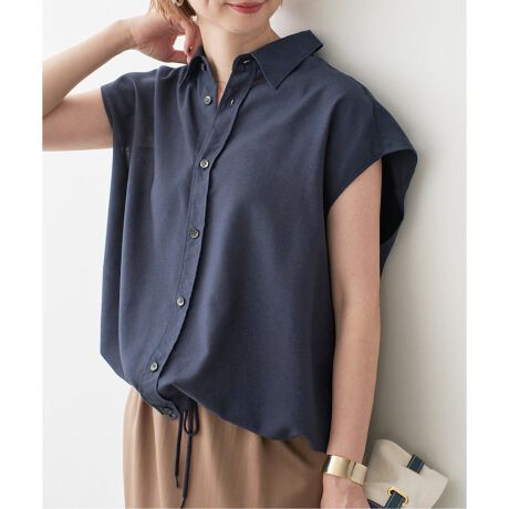 25050200318020 リネンブレンドフレンチヘムギャザーシャツ