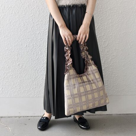 ギャザーデザインのハンドルがアクセントで、コーディネートに華やかさをプラスしてくれるデザイン。