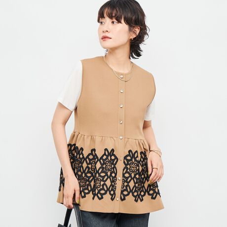 ・裾に施した繊細なカーブを描くレースモチーフがポイントのペプラムベスト