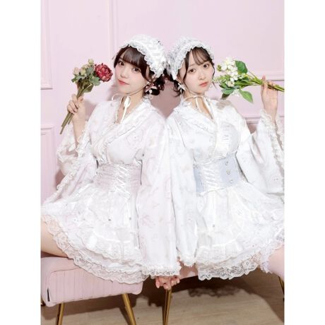 衿を縁取るパールやたっぷりのフリルとレースで心ときめくデザインに◎