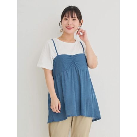 胸元のギャザーがフェミニンなキャミソール×Tシャツの2点セット。