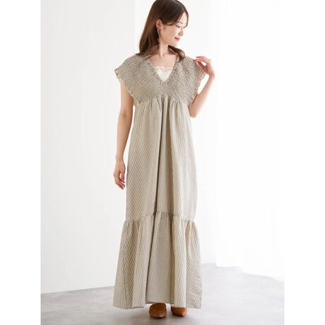 シャーリングギャザーワンピース(無地・ストライプ柄)