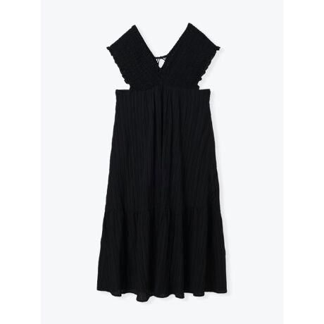 一枚でシーズンライクな涼やかなコーディネートがキマるので、ピアスやバッグなどの小物でアクセントをつけるのが◎