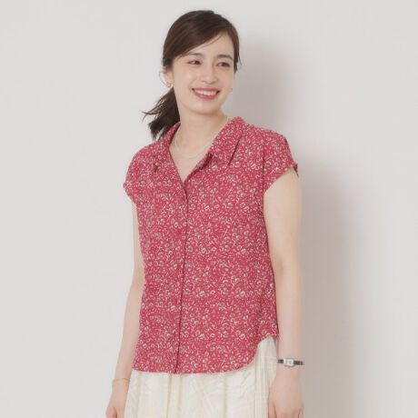 カジュアルに着られる開襟ブラウス。