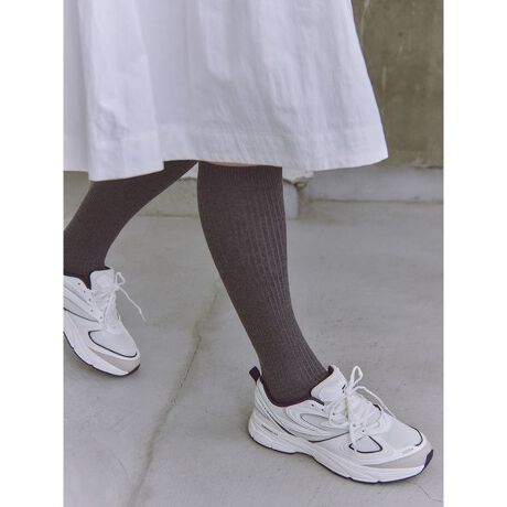 洗練されたデザインで持っていると重宝するハイソックス。フィット感と脚がすっきりと見えるように仕上げたリブ編みがこだわりのポイント。