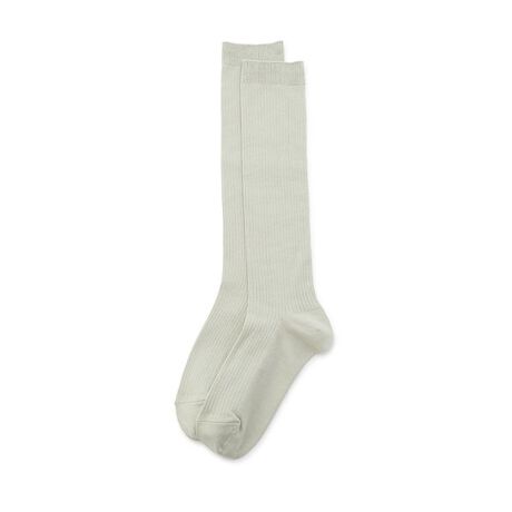 洗練されたデザインで持っていると重宝するハイソックス。フィット感と脚がすっきりと見えるように仕上げたリブ編みがこだわりのポイント。
