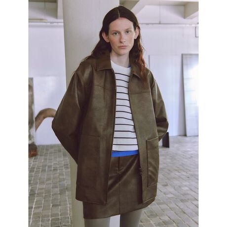 ゆったりとしたシルエットでメンズライクなフェイクレザーブルゾンは、褪せたような加工感がヴィンテージライクに。