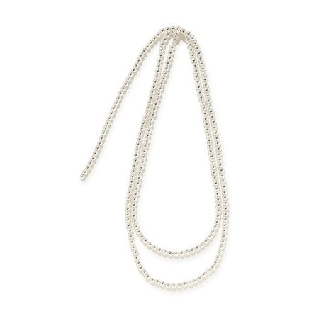 上質なプラスチックパールとメタルパールのロングネックレス。2.3連でつけることはもちろん、1連で超ロングネックレスとしても使えつつ、バッグスタイルに垂らすこともでき、いろんな着用の仕方ができます。コーディネートを華やかにしてくれるアイテムです。