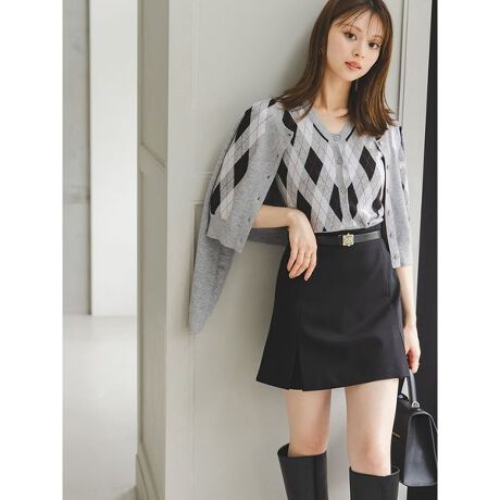 ジレ型プルオーバーにトラッドなアーガイル柄を施すことで、トレンド感満載なスタイリングを叶えてくれる1枚に仕上がりました。ややクロップド丈でのお作りで、首元をVネックにすることで抜け感を出し、女性らしさをプラス。胸元のSNIDELロゴの刺繍をアクセントに。またフロントには艶感のあるボタンを配置し、上品に仕上げました。裾はリブに切り替えており、アウトスタイルもすっきりと演出します。一番下のボタンを1つ外し、抜け感のあるスタイリングに。同じ柄のアーガイルカーディガン(SWNT254289)とアンサンブルでご着用いただけます。シンプルキレイなスカショーパン(SWFP254274)と合わせたスクールガール風スタイルもおすすめです。