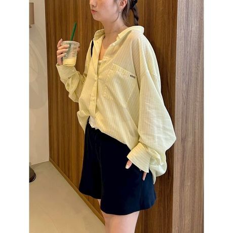 透け感ある先染めのストライプ生地をオーバーサイズに仕立てました。
