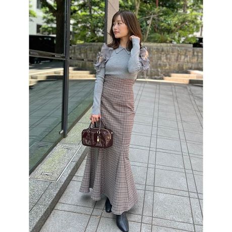 毎年人気の美シルエットにこだわったキレイめマーメイドスカートが今季もお目見え。ボディラインに寄り添うカーヴィーな切り替えでメリハリのあるラインを演出し、美脚効果も抜群です。グレー、ブラック、ブラウン、チェックの4色展開です。今年は、ブラウンに秋らしいフェイクレザーを使用しました。グレー、ブラックはキレイめのスーツ生地です。チェックは昨年よりも細かいピッチで仕上げ、今季らしいブラウンカラーでエレガントに仕上げています。裏地付きです。サイドファスナーで着脱いただけます。