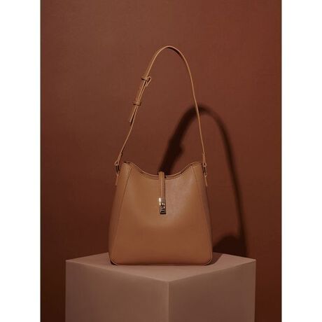 程よく柔らかなフェイクレザー素材を使用した、洗練された雰囲気が魅力のツイストメタルトートバッグです。ツイストでオープンできる品のあるゴールド金具が高級感を演出。安定感のある程よく幅広のストラップで、ショルダーの長さは調節が可能です。お財布やタンブラー、ポーチやiPadなどがたっぷり入る収納力も魅力。内側にはポケットが両サイドにポケットが付いていて便利です。ブラック、キャメル、ピンクの3色展開です。ピンクはグレー調のスモーキーな色味で大人な印象です。