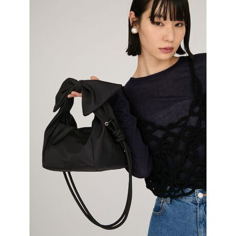 リボンデザインが施されたハンドルが特徴の小さめのバッグです。コーディネートのアクセントとして使えるデザインで、コンパクトながらも収納力もあります。さらに、ショルダーストラップは取り外し可能なので、その日のスタイルに合わせて変化できるバッグです。カジュアルやシンプルなコーディネートにアクセントとしてオススメのバッグです。