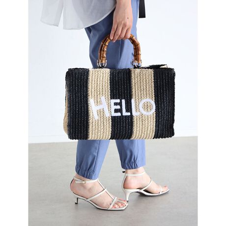 フロッキー加工されたもこもこの「HELLO」がチアフルなインパクトのバッグ本体は、織物生地と裏地の2枚仕立てで、中身が見えづらい安心の仕様。