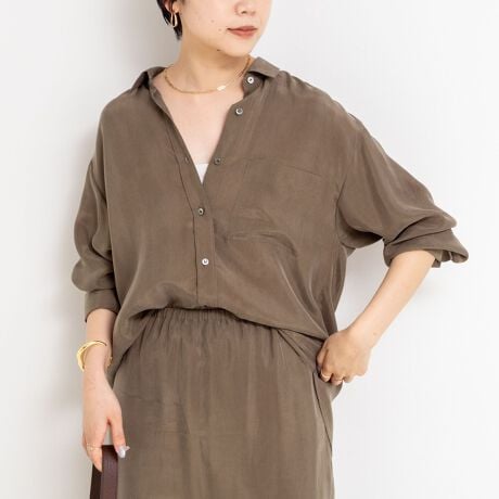 ・柔らかでシルキータッチなフィブリル加工されたキュプラ素材を使用したシャツ