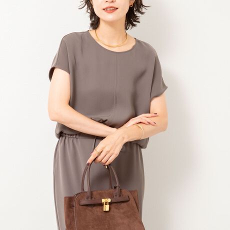 《セットアップ対応》ウォッシャブルダブルサテンフレンチブラウス