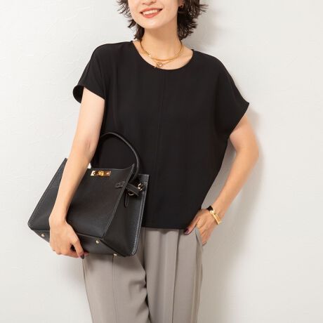 《セットアップ対応》ウォッシャブルダブルサテンフレンチブラウス