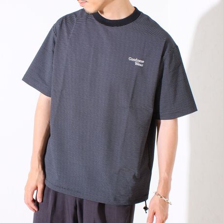 ・【デザイン性と実用性】胸元の“Goodness Wear”刺繍がワンポイントに。裾にはシルエット調整可能なスピンドル入り。