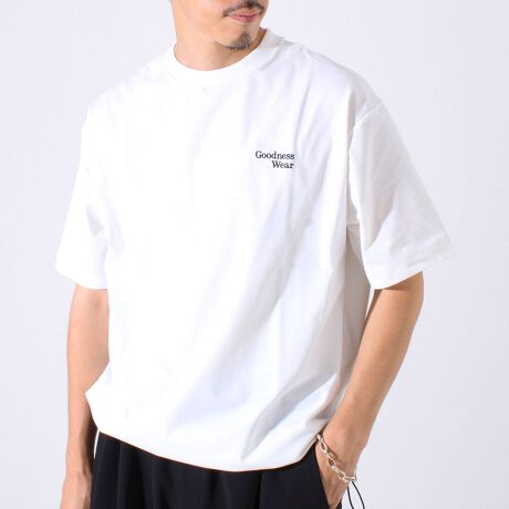・【デザイン性と実用性】胸元の“Goodness Wear”刺繍がワンポイントに。裾にはシルエット調整可能なスピンドル入り。