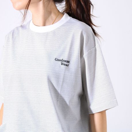 ・【デザイン性と実用性】胸元の“Goodness Wear”刺繍がワンポイントに。裾にはシルエット調整可能なスピンドル入り。