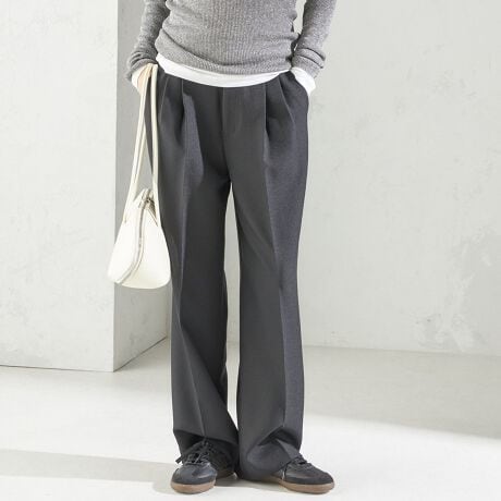 腰位置が高く見え、よりすっきり見えが叶う2タックセミワイドパンツです。