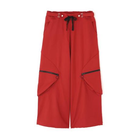 ビビットなレッドが目を引くワイドカーゴパンツ。
