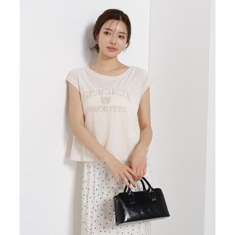 程よい透け感のあるシアーベロア素材を使い、オリジナルのラメ刺しゅうをあしらったキャッチーなTシャツです。袖はフレンチスリーブでカジュアルすぎず、女性らしさ感じるデザインです。コーディネートに取り入れるだけで旬な表情に見せてくれます。