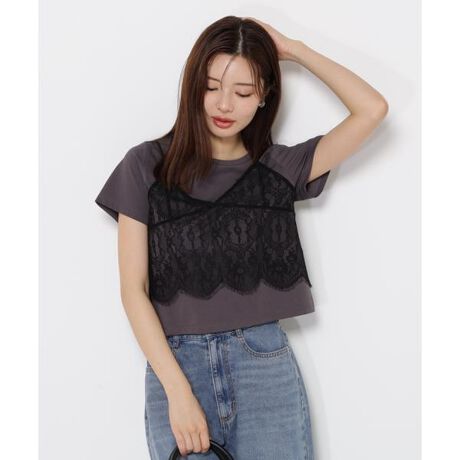 繊細なレース素材のキャミソールがセットになったカットソーです。レースキャミソールとカットソーはニュアンス感のある微配色なので、カジュアルすぎず大人っぽい雰囲気です。レースキャミソールの肩紐は長さ調節可能。このセットで旬なレイヤードスタイルが楽しめます。