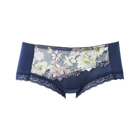 [型番:PXB643]●はきごこちがよいバックはやわらかく伸びるナイロンベア天竺素材で、はきごこちがよい「リボンブラ 脇すっきり(BXB443)」とペアコーデが楽しめるボーイレングスショーツ。花の美しい瞬間を切り取った、押し花のようなレースで華やかに。