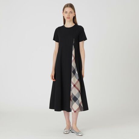 ピマコットンプレーティング天竺パーシャルチェックドレス