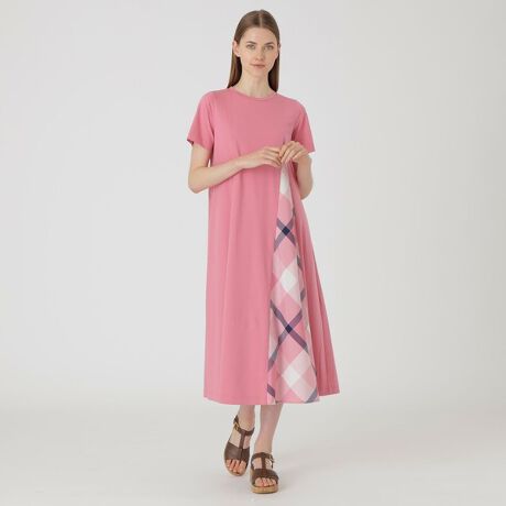 ピマコットンプレーティング天竺パーシャルチェックドレス