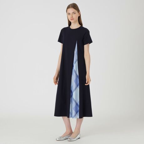 ピマコットンプレーティング天竺パーシャルチェックドレス