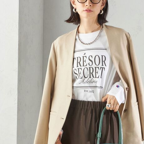 ChampionらしいフットボールTEEの形に、あえてきれいめな雰囲気のロゴをのせることで大人カジュアルな印象に仕上げました。