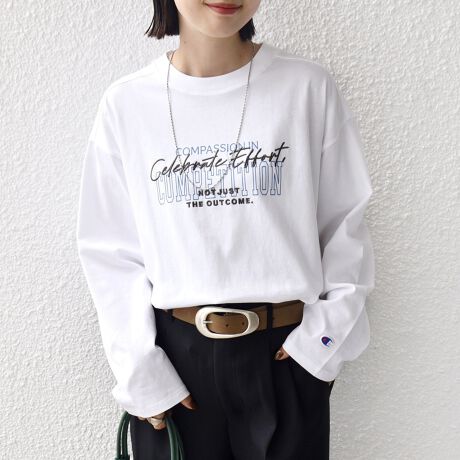 【SHIPS別注】Champion: プリント ロングスリーブ TEE
