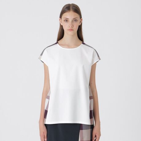 クレストブリッジチェック×無地素材を使った異素材合わせのカットソーです。