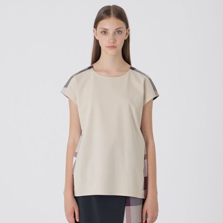 クレストブリッジチェック×無地素材を使った異素材合わせのカットソーです。