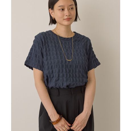 ぽこぽことした凹凸のある表面感と柔らかな風合いが特徴のトップス。伸縮性のある素材で着心地も良く、シワになりにくいのも嬉しいポイントです。程よくフィットするシルエットで、すっきりとした印象を与えてくれます。シンプルなデザインなので幅広いコーディネートに合わせやすく、カジュアルからフェニミンスタイルまで幅広く楽しめる一枚です。透け感[ややあり]