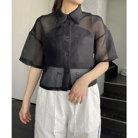 [型番:PB8189]◆これからの時期にぴったりなシアーシャツ◆シンプルなデザインのシャツで、シアー感がトレンドライクなアイテムです。キャミソールと合わせたり、ワンピースに羽織ったりしてスタイリングを楽しめます。