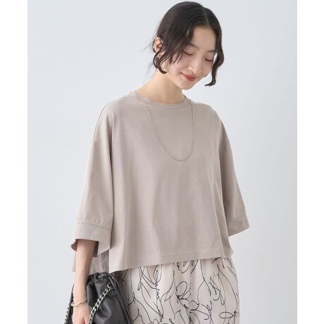 触れるとひんやり涼しく感じる接触冷感素材で仕立てたTシャツ。背中をギャザーたっぷりに切り替え、カジュアルながらも女性らしいデザインに仕上げました。ワイドな身幅でリラクシーな着心地も魅力的。豊富なカラー展開にも注目です。さらりと着るだけでこなれた雰囲気を演出してくれるおすすめのアイテムです。透け感[ややあり]