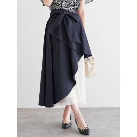 アシンメトリーなラッフルデザインが上品で華やかなスカート