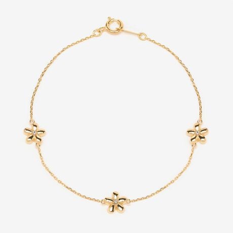 繊細なシルバーチェーンに、小さなフラワーチャームがそっと揺れる、可憐な印象のブレスレット。