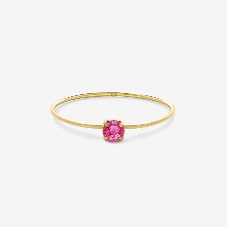 1粒のルビーが、情熱的で華やかな印象を添えるイエローゴールドのリング。
