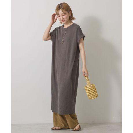 ソフトタッチで爽やかなワッフル素材を使用したワンピース。ゆとりあるIラインシルエットのリラクシーな着用感で体型カバーも叶えるユースフルな一着です。折り返し袖やサイドスリットヘムが抜け感あるデザインポイント。一枚ではもちろん、柄物パンツと合わせたレイヤードスタイルもおすすめです。透け感[なし]