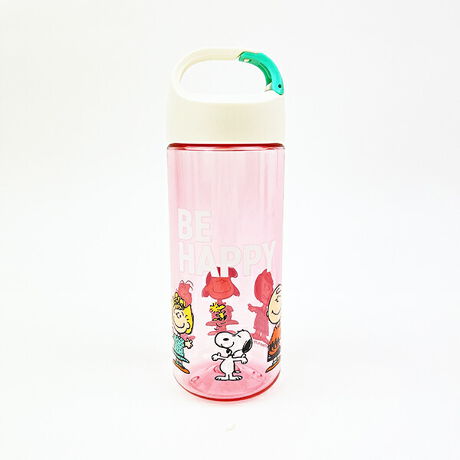 スヌーピーのクリアドリンクホルダーです。フタに持ち手が付いていて、持ち手の一部がバネになっていてバッグなどに引っ掛けられて持ち運びに便利♪ボトルもクリアなので中身も確認しやすい◎ランチのお供にもぴったりです☆【容量:540ml】
