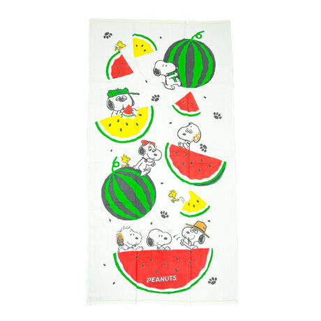 スイカ柄が夏っぽくて可愛いスヌーピーのバスタオルです。とっても可愛いデザインなのでスヌーピーの好きの方にはたまりません♪洗濯機で洗えるので汚れてもすぐに洗えて、清潔に使えて普段使いにぴったりです☆彡